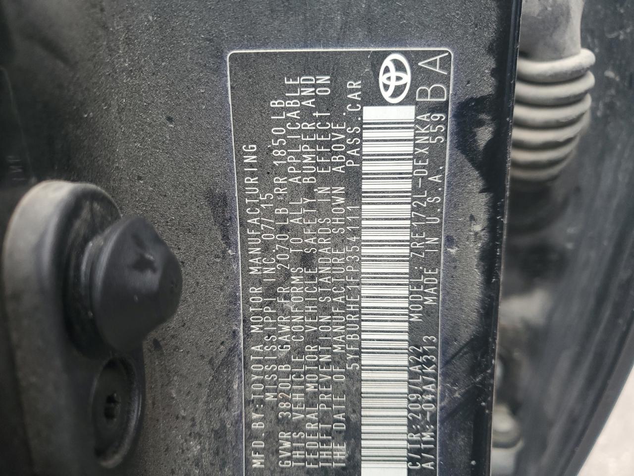 TOYOTA COROLLA 1.8 2015 г.в., (5YFBURHE1FP354111) из США