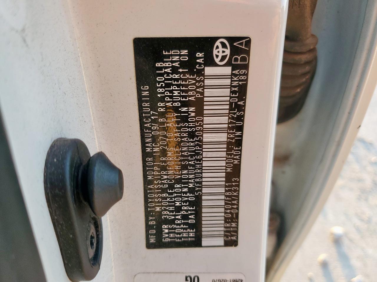 TOYOTA COROLLA 1.8 2018 г.в., (5YFBURHE6JP750950) из США