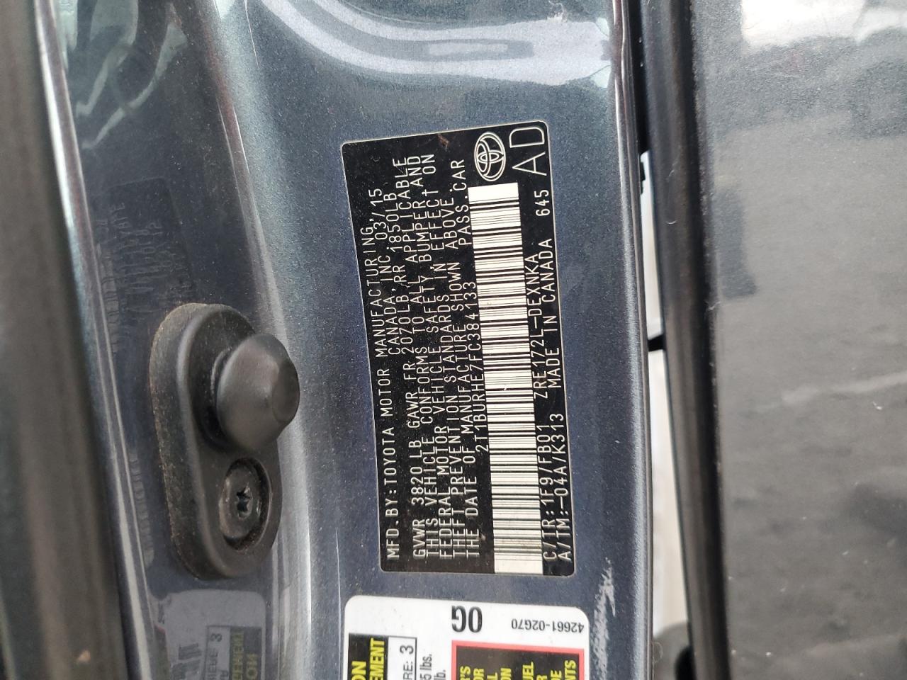 TOYOTA COROLLA 1.8 2015 г.в., (2T1BURHE7FC384133) из США