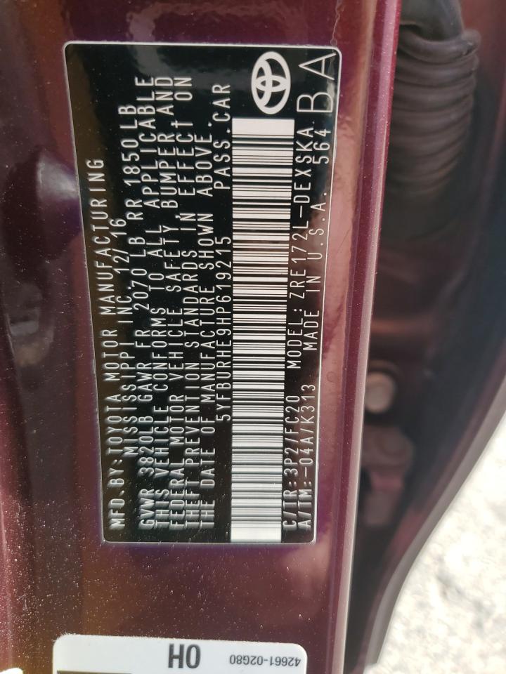 TOYOTA COROLLA 1.8 2017 г.в., (5YFBURHE9HP619215) из США