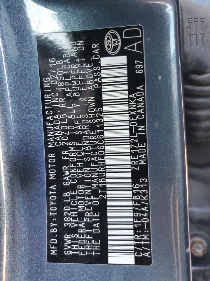 TOYOTA COROLLA 1.8 2016 г.в., (2T1BURHE0GC611325) из США