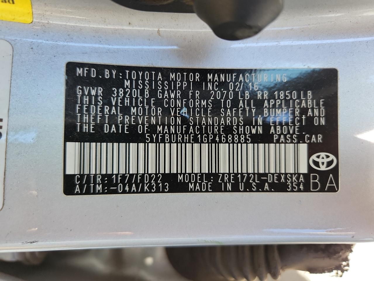 TOYOTA COROLLA 1.8 2016 г.в., (5YFBURHE1GP468885) из США