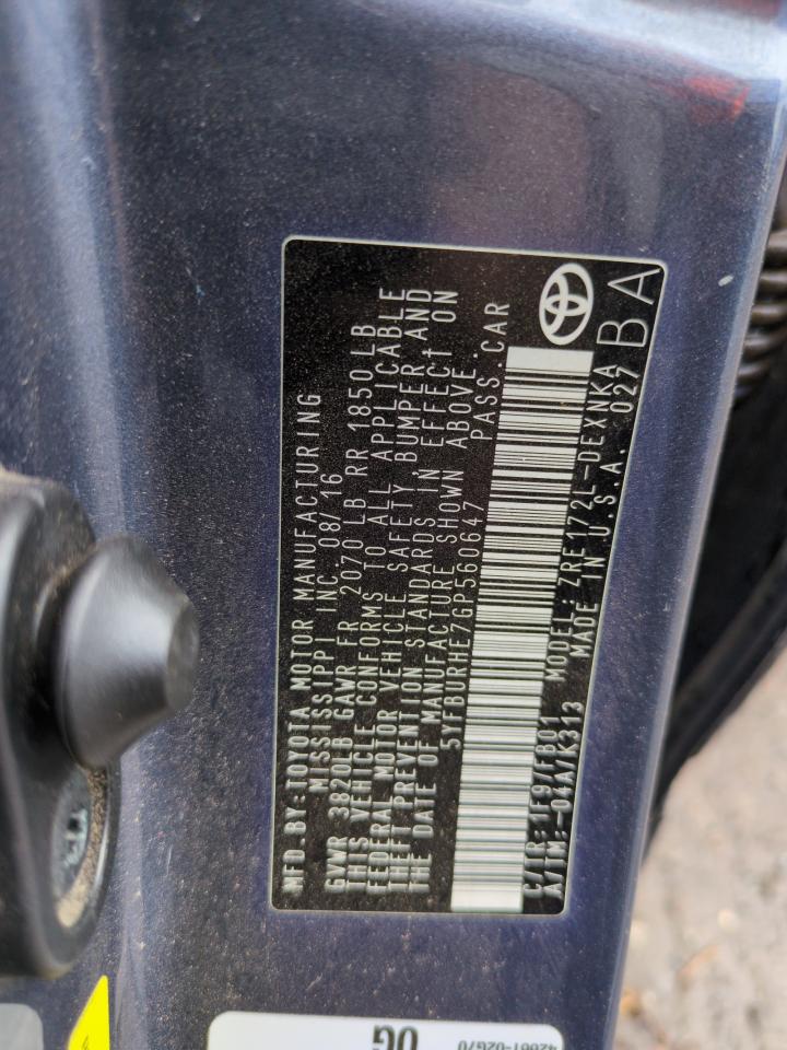 TOYOTA COROLLA 1.8 2016 г.в., (5YFBURHE7GP560647) из США