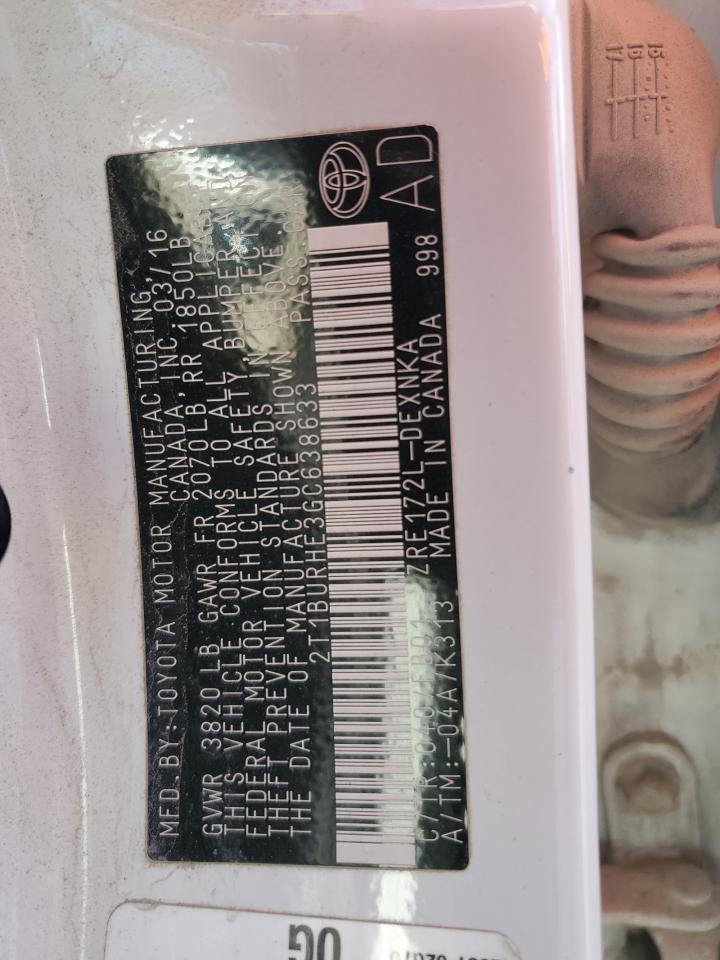 TOYOTA COROLLA 1.8 2016 г.в., (2T1BURHE3GC638633) из США