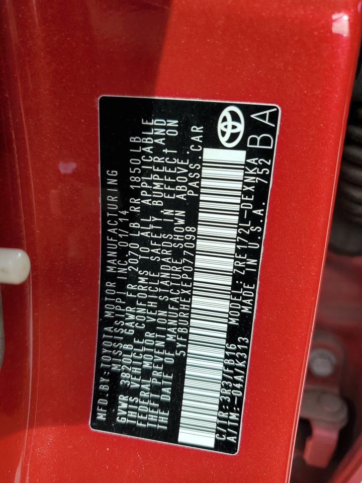 TOYOTA COROLLA 1.8 2014 г.в., (5YFBURHEXEP077098) из США