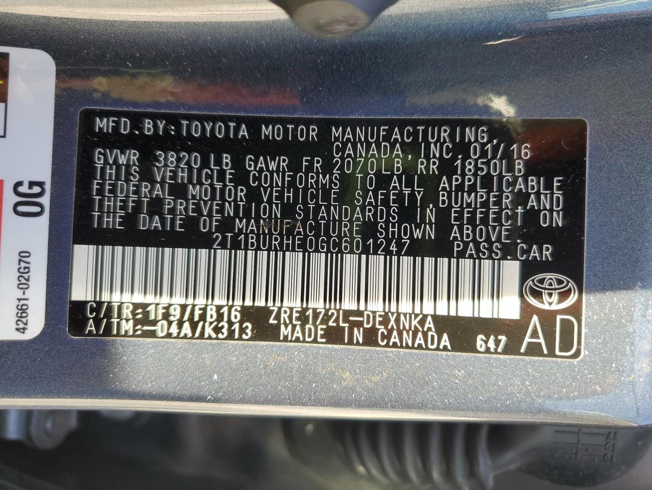 TOYOTA COROLLA 1.8 2016 г.в., (2T1BURHE0GC601247) из США