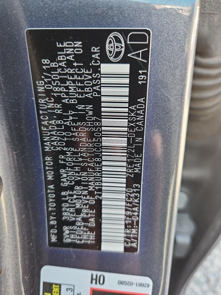 TOYOTA COROLLA 1.8 2018 г.в., (2T1BURHE8JC050587) из США