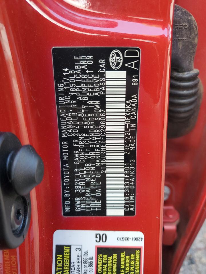 Цвет КрасныйЦилиндры 4VIN 2T1BURHE6FC298067Состояние НеизвестноПовреждение Передняя или задняя