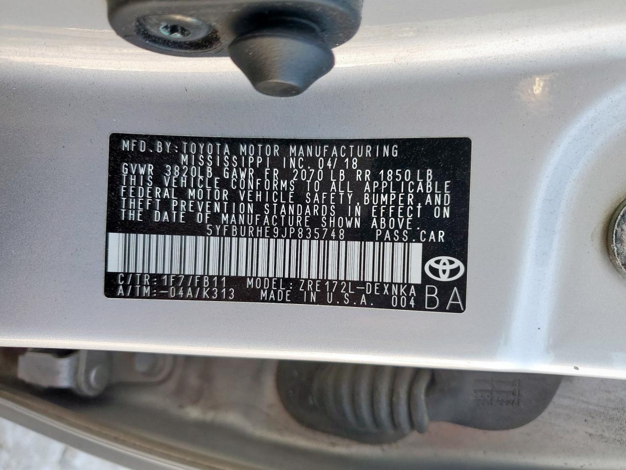TOYOTA COROLLA 1.8 2018 г.в., (5YFBURHE9JP835748) из США