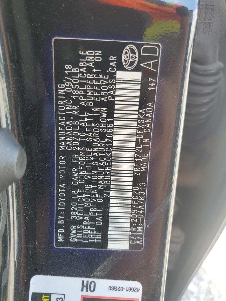 TOYOTA COROLLA 1.8 2019 г.в., (2T1BURHE0KC170661) из США