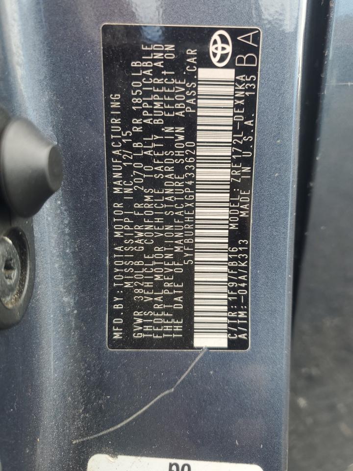 TOYOTA COROLLA 1.8 2016 г.в., (5YFBURHEXGP433620) из США