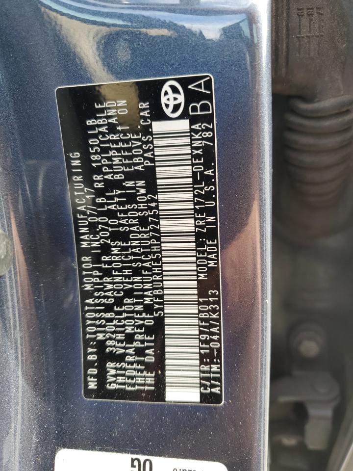 TOYOTA COROLLA 1.8 2017 г.в., (5YFBURHE5HP727542) из США