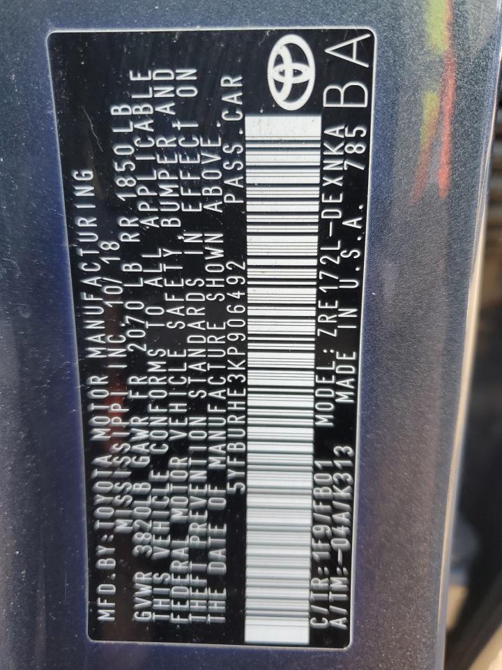 TOYOTA COROLLA 1.8 2019 г.в., (5YFBURHE3KP906492) из США