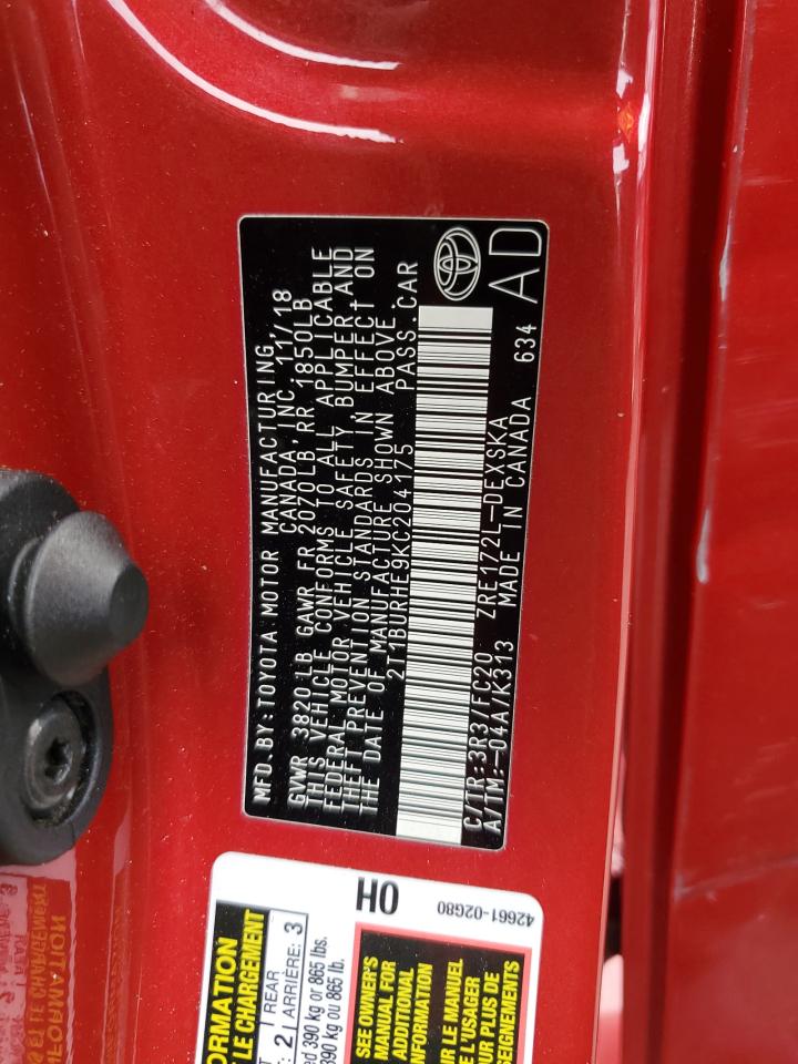 TOYOTA COROLLA 1.8 2019 г.в., (2T1BURHE9KC204175) из США