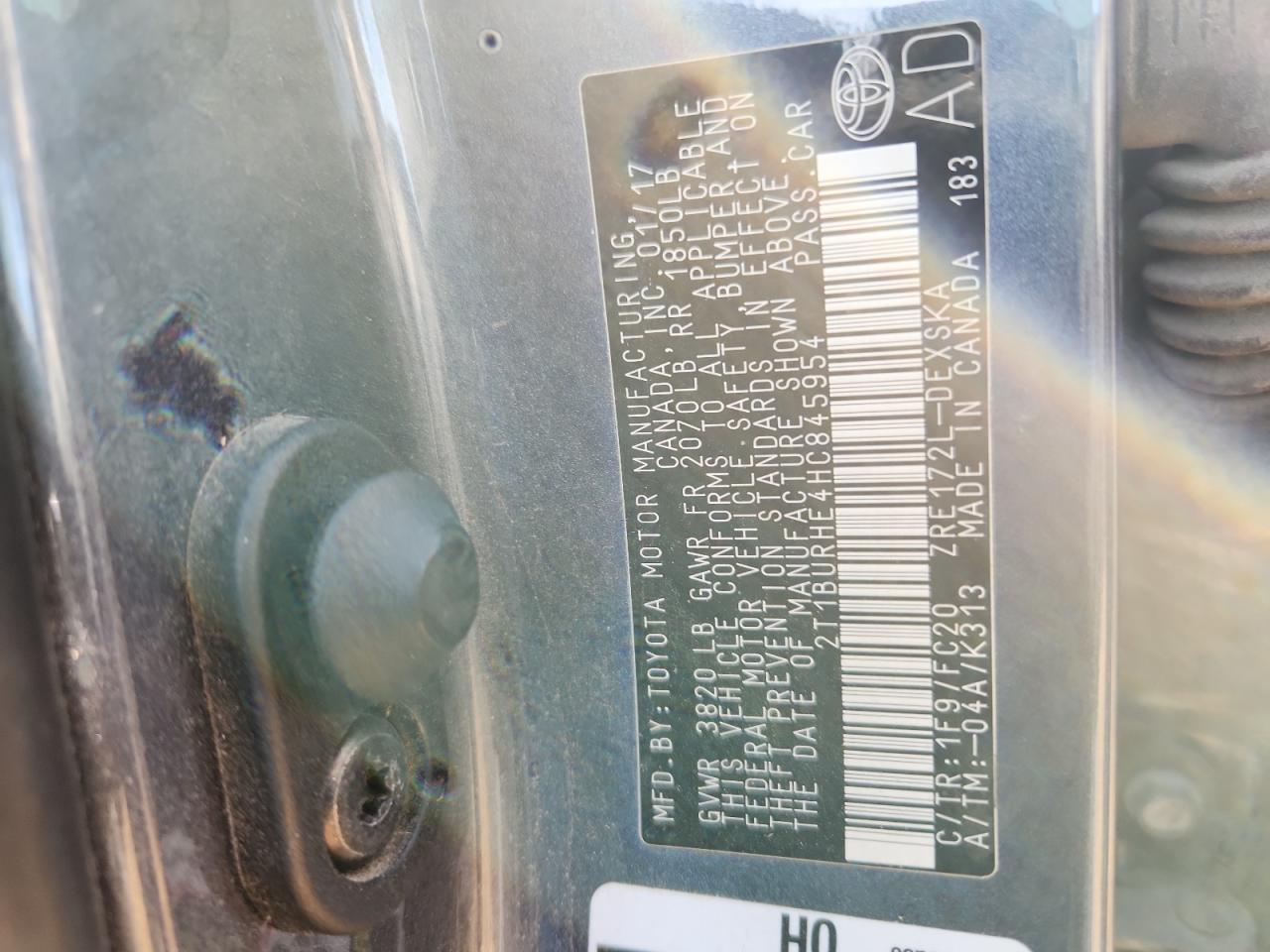 TOYOTA COROLLA 1.8 2017 г.в., (2T1BURHE4HC845954) из США