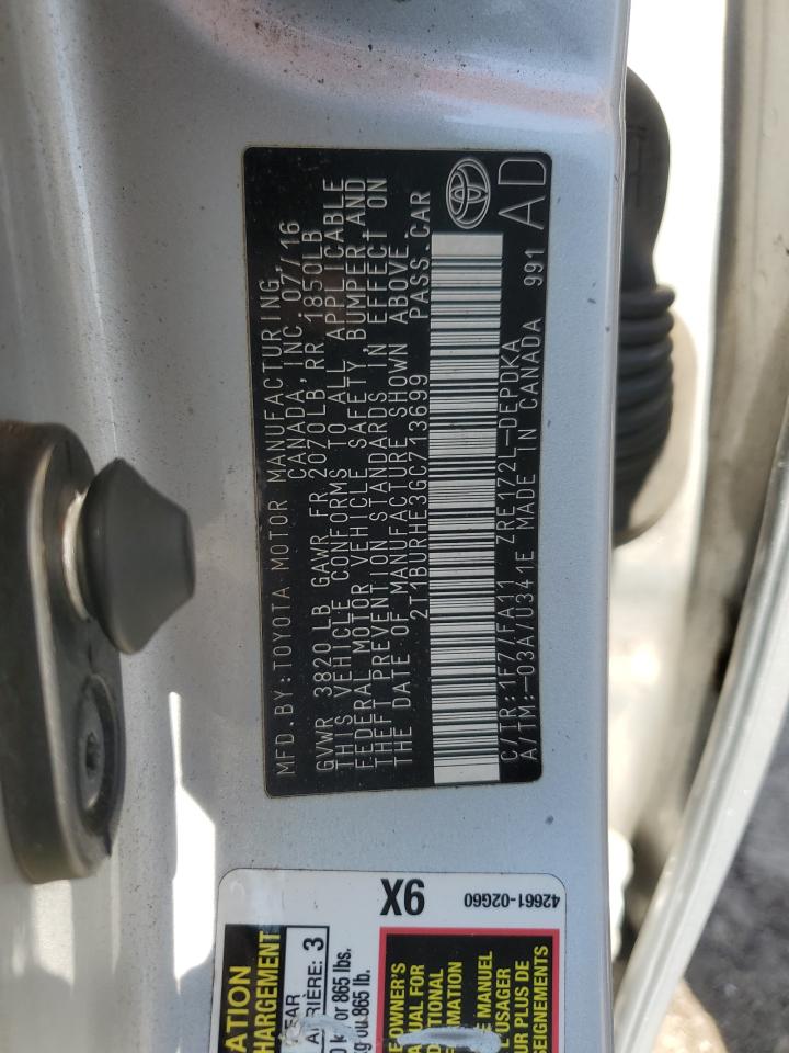 Цвет СеребряныйЦилиндры 4VIN 2T1BURHE3GC713699Состояние НеизвестноПовреждение Передняя или задняя