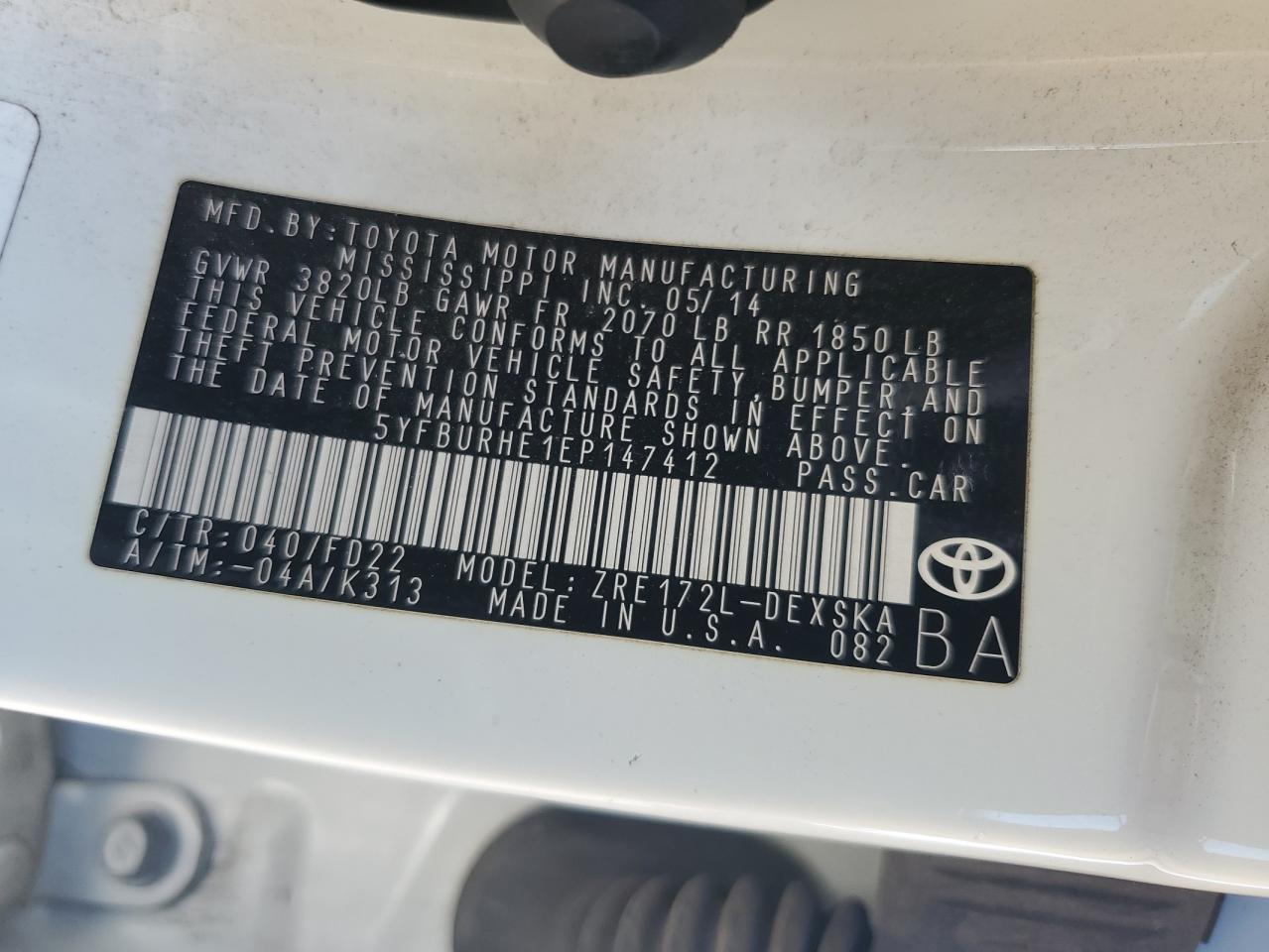 TOYOTA COROLLA 1.8 2014 г.в., (5YFBURHE1EP147412) из США