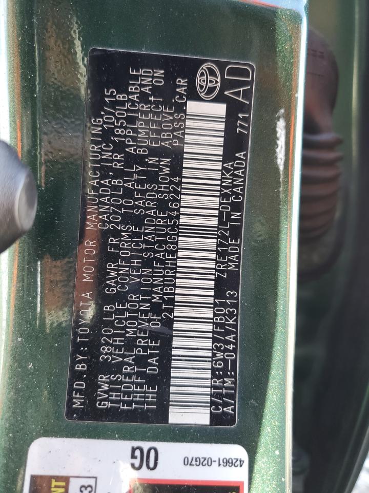 TOYOTA COROLLA 1.8 2016 г.в., (2T1BURHE8GC546224) из США