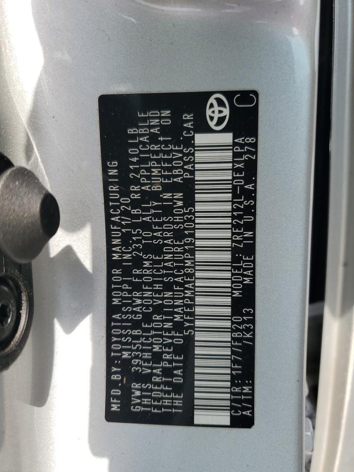 TOYOTA COROLLA 1.8 2021 г.в., (5YFEPMAE8MP191035) из США