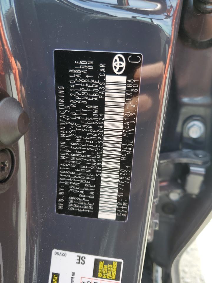 Цвет Древесный угольЦилиндры 4VIN 5YFB4MDE5SP304024Состояние НеизвестноПовреждение Передняя или задняя