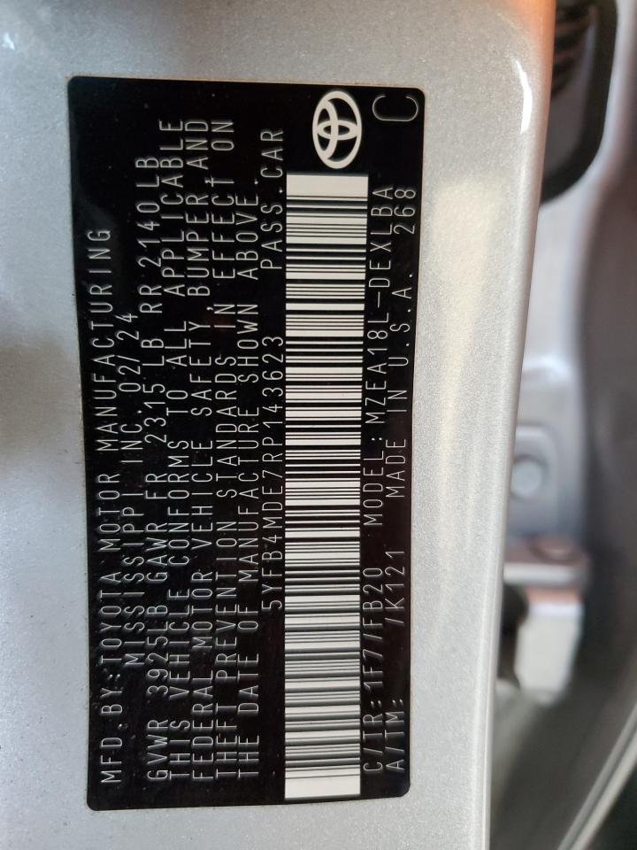 Цвет СеребряныйЦилиндры 4VIN 5YFB4MDE7RP143623Состояние ЗаводитсяПовреждение Передняя или задняя