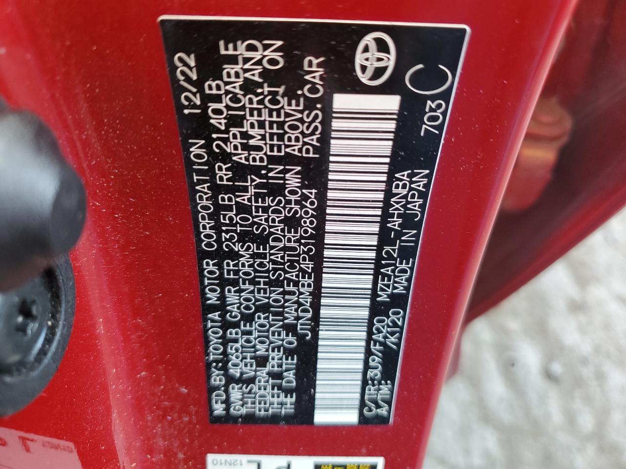 TOYOTA COROLLA 2.0 2023 г.в., (JTND4MBE4P3198964) из США