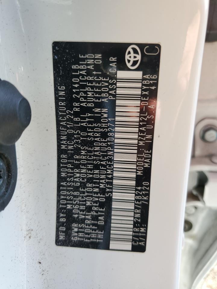 Цвет БелыйЦилиндры 4VIN 5YFT4MCE3NP108271Состояние НеизвестноПовреждение Передняя или задняя