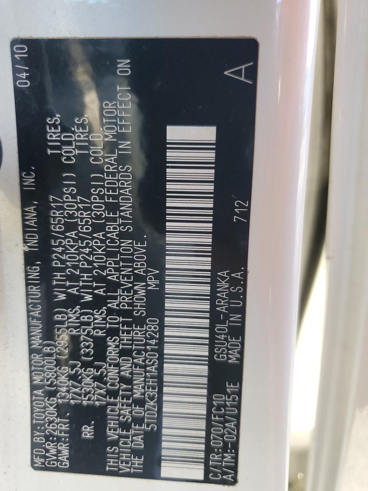 TOYOTA HIGHLANDER 3.5 2010 г.в., (5TDZK3EH1AS014280) из США