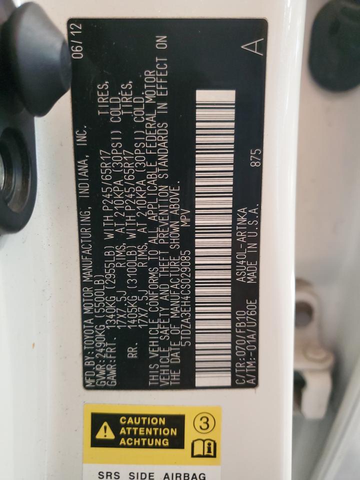TOYOTA HIGHLANDER 2.7 2012 г.в., (5TDZA3EH4CS029085) из США