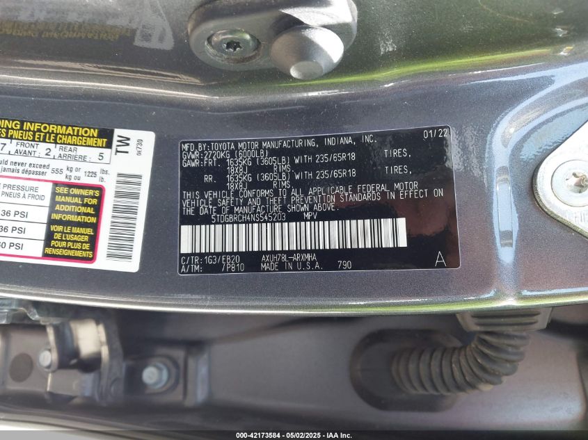TOYOTA HIGHLANDER 2.5 2022 г.в., Полный привод (5TDGBRCH4NS545203) из США