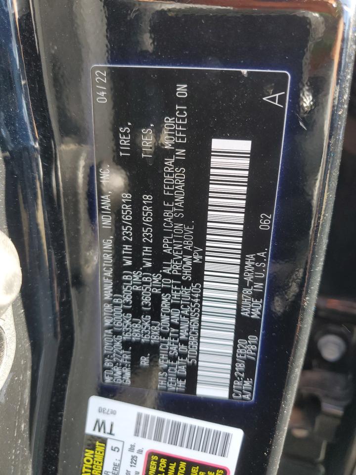 TOYOTA HIGHLANDER 2.5 2022 г.в., Полный привод (5TDGBRCH6NS554405) из США
