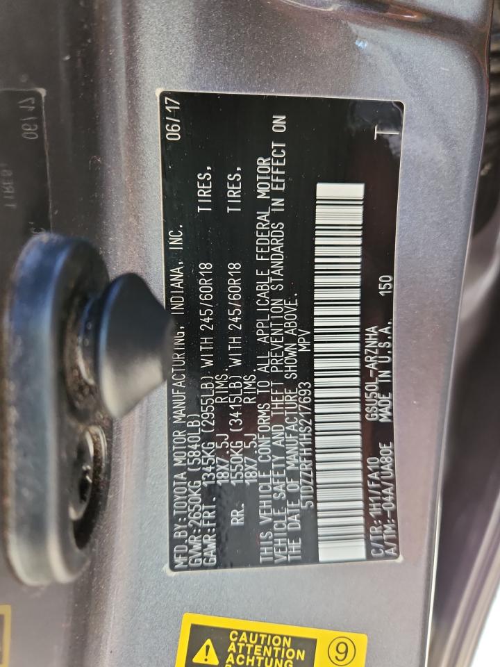 TOYOTA HIGHLANDER 3.5 2017 г.в., (5TDZZRFH1HS217693) из США