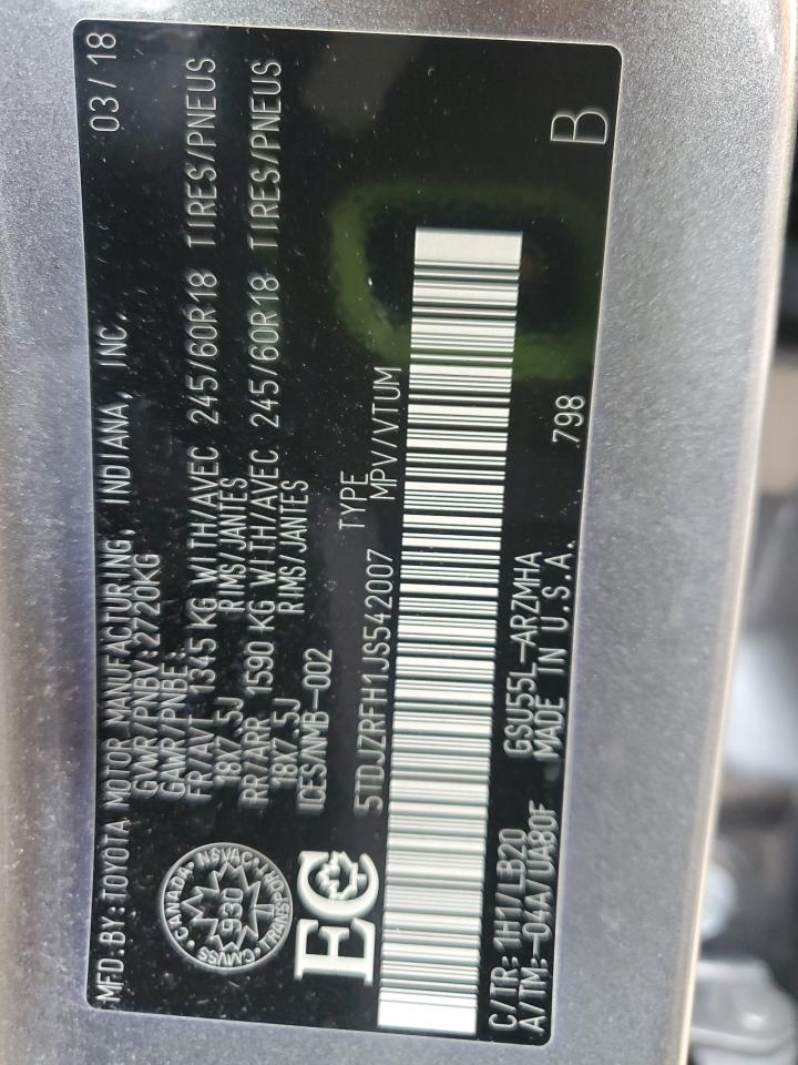 TOYOTA HIGHLANDER 3.5 2018 г.в., Полный привод (5TDJZRFH1JS542007) из США