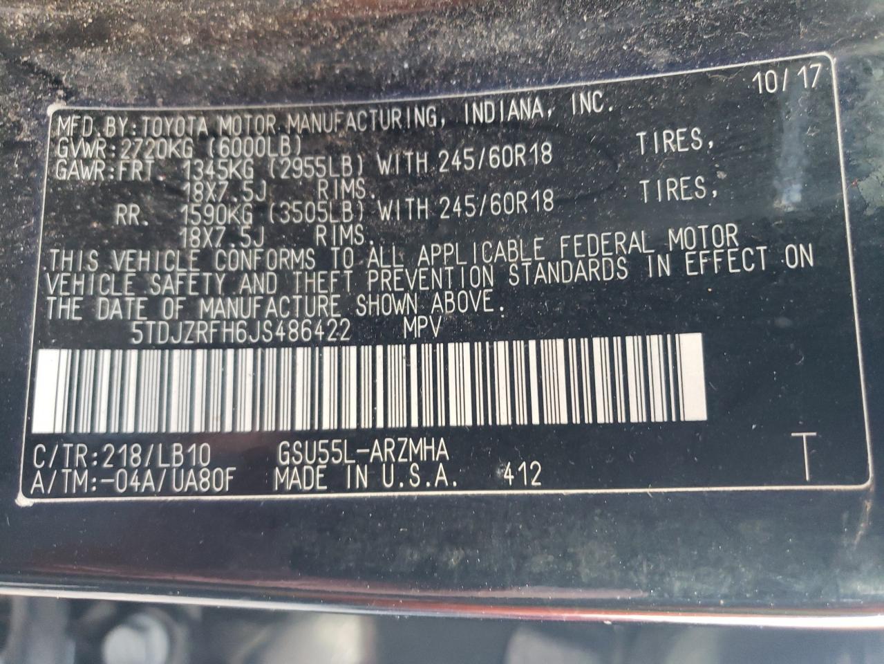 TOYOTA HIGHLANDER 3.5 2018 г.в., Полный привод (5TDJZRFH6JS486422) из США