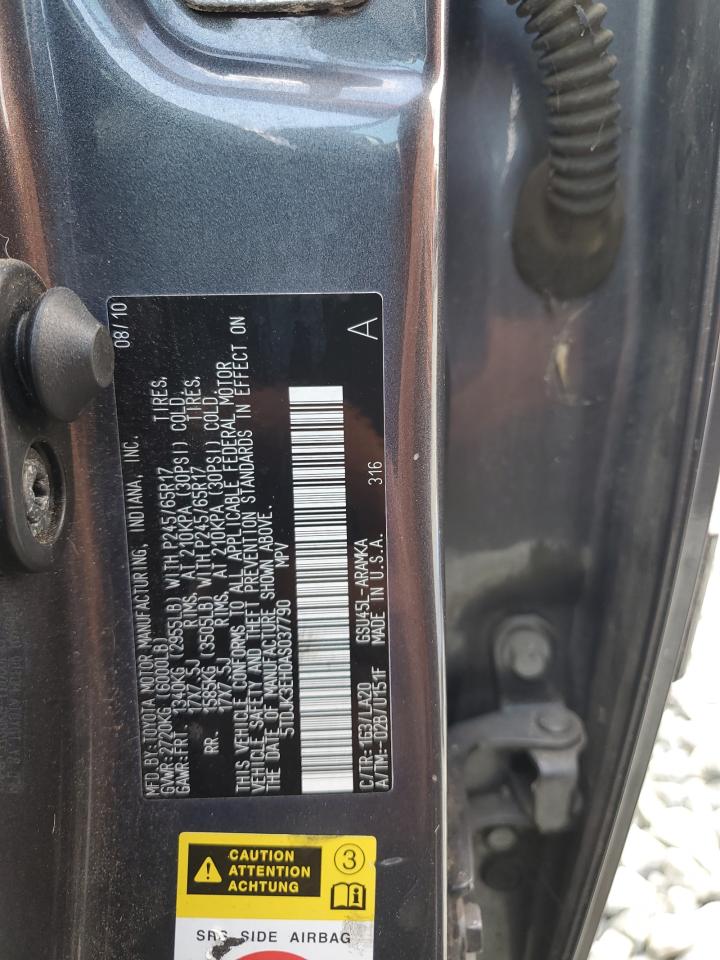 TOYOTA HIGHLANDER 3.5 2010 г.в., Полный привод (5TDJK3EH0AS037790) из США