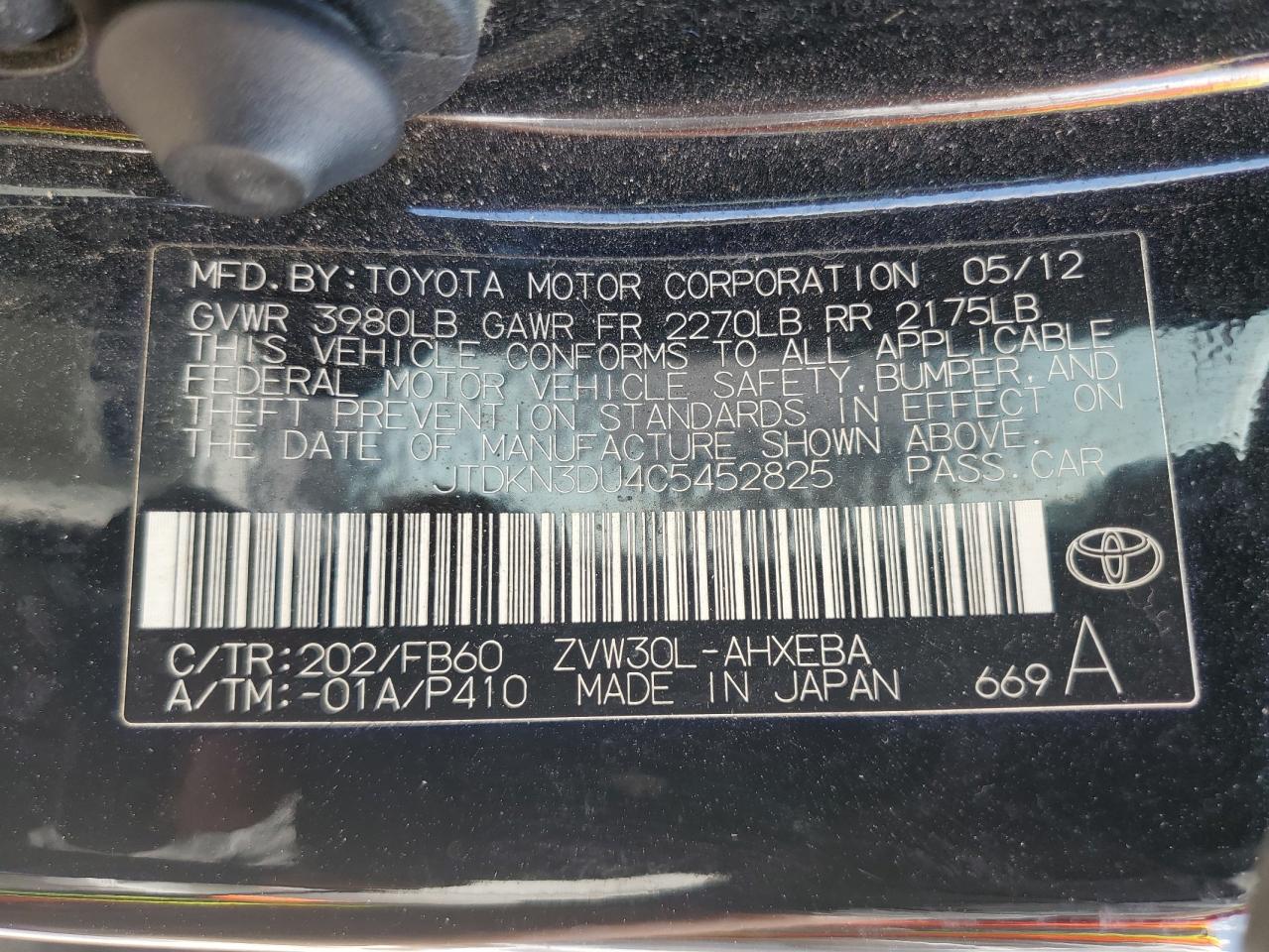 Цвет ЧерныйЦилиндры 4VIN JTDKN3DU4C5452825Состояние Заводится и едет (проверено)Повреждение Передняя или задняяДата аукциона 2025-11-04