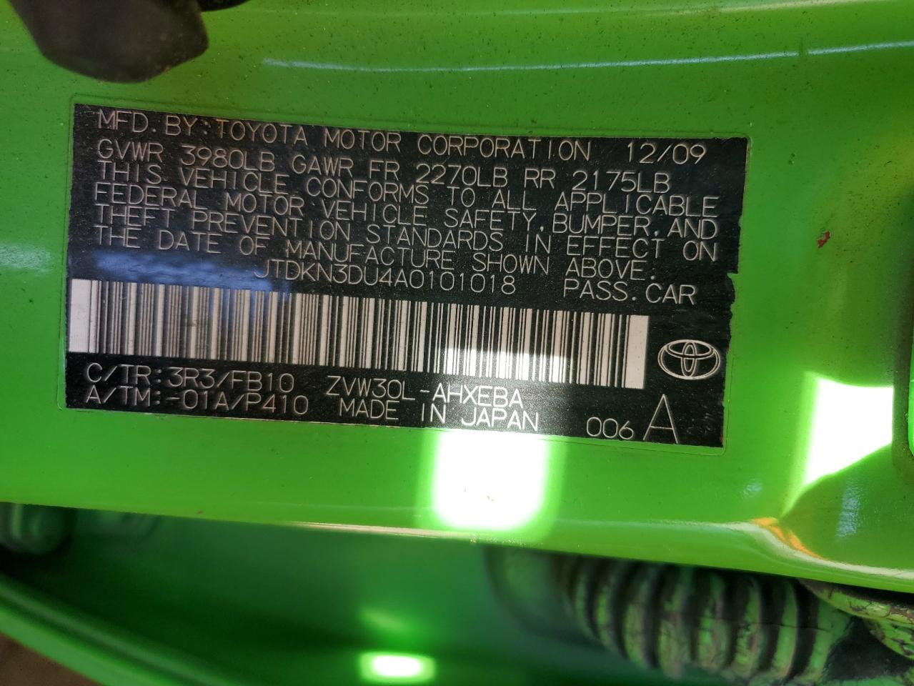 Цвет ЗеленыйЦилиндры 4VIN JTDKN3DU4A0101018Состояние ЗаводитсяПовреждение Передняя или задняяДата аукциона 2025-11-03