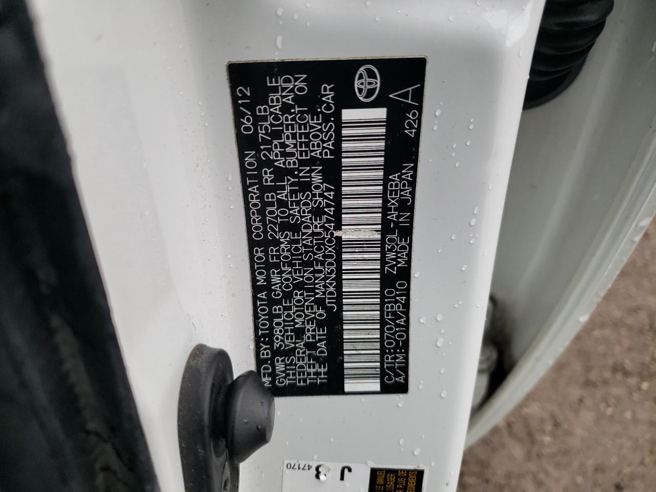 Цвет БелыйЦилиндры 4VIN JTDKN3DUXC5474747Состояние Заводится и едет (проверено)Повреждение Задняя