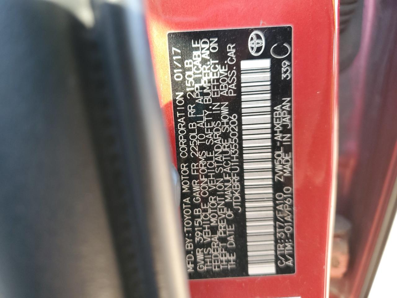 TOYOTA PRIUS 1.8 2017 г.в., (JTDKBRFU1H3550206) из США