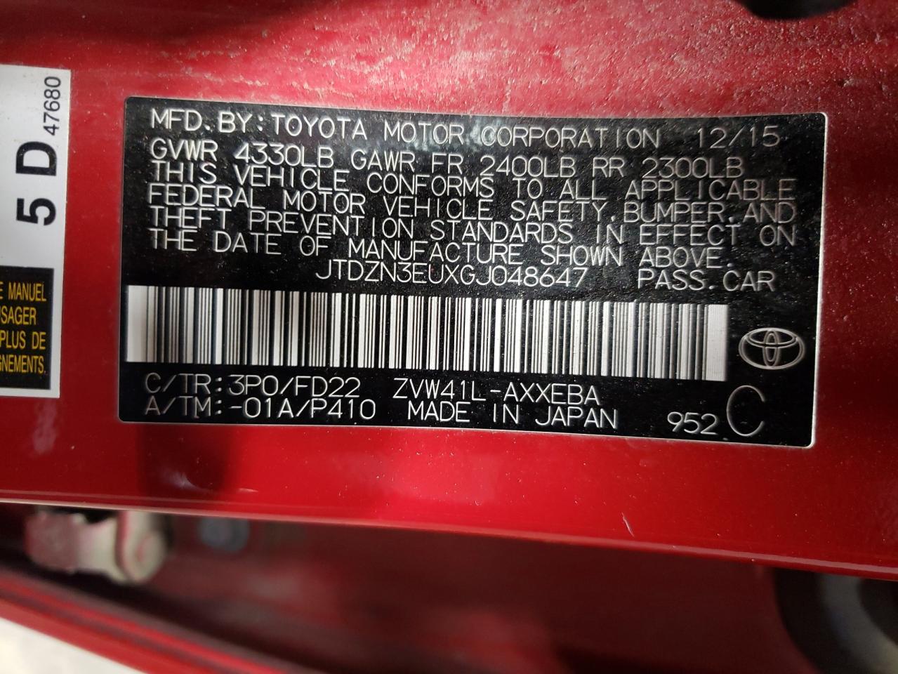 Цвет КрасныйЦилиндры 4VIN JTDZN3EUXGJ048647Состояние Заводится и едет (проверено)Повреждение Град