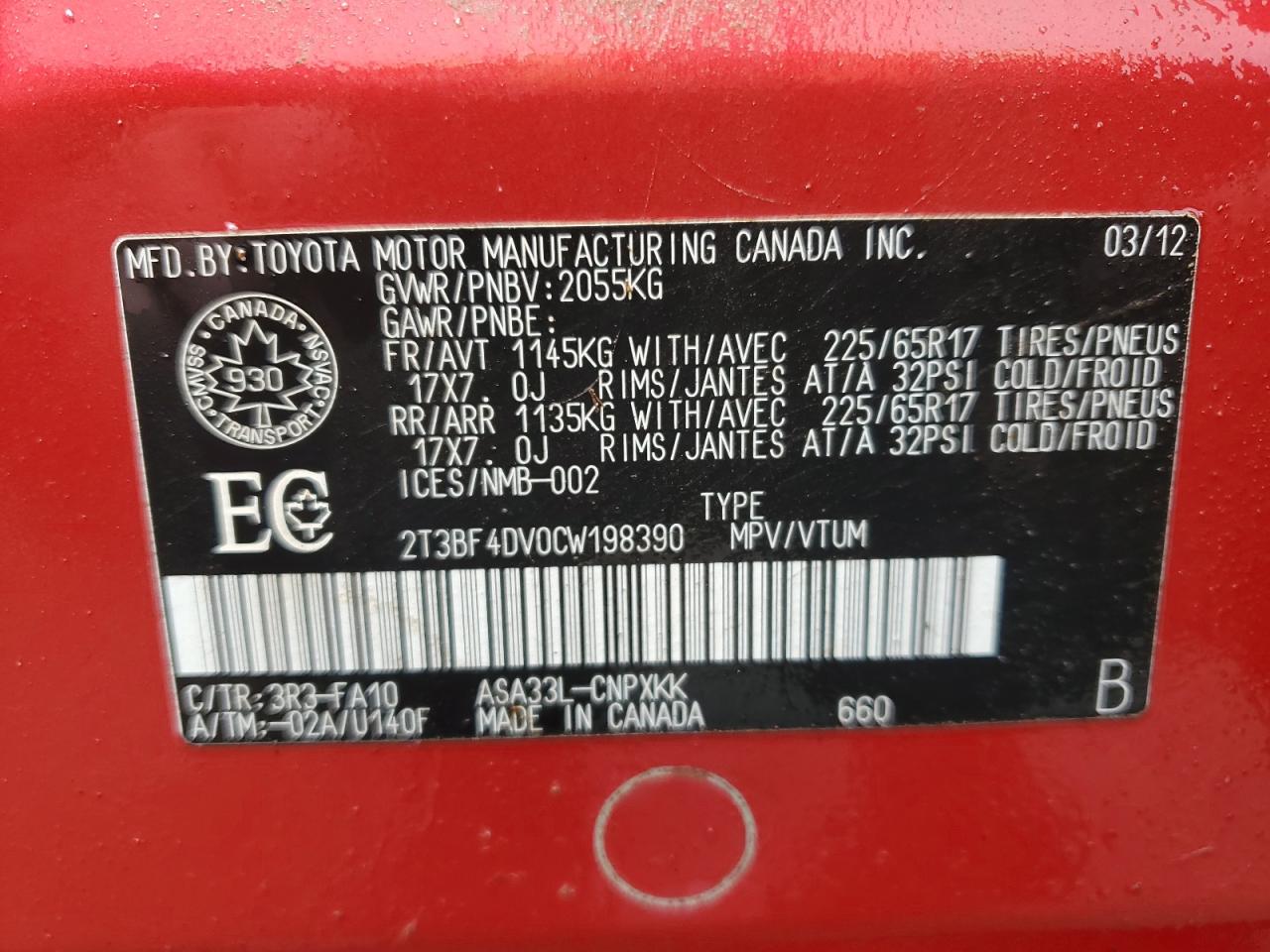 Цвет КрасныйЦилиндры 4Привод Полный приводVIN 2T3BF4DV0CW198390Состояние НеизвестноПовреждение По всему автоДата аукциона 2025-11-06