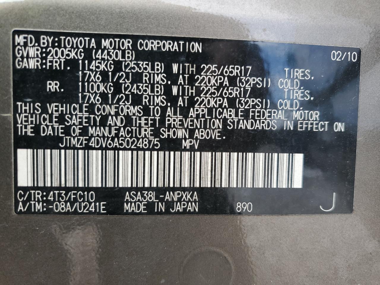 Цвет СерыйЦилиндры 4VIN JTMZF4DV6A5024875Состояние ЗаводитсяПовреждение ВодаДата аукциона 2025-11-05