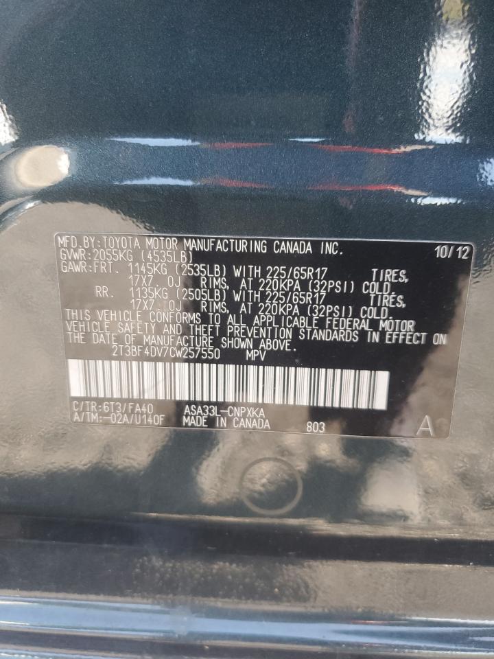 TOYOTA RAV4 2.5 2012 г.в., Полный привод (2T3BF4DV7CW257550) из США