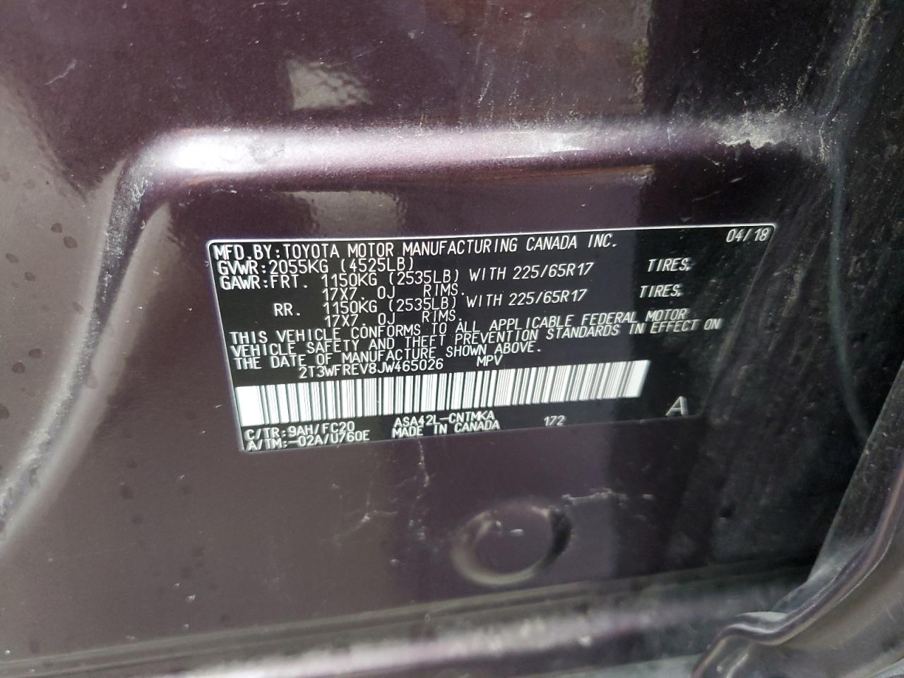 TOYOTA RAV4 2.5 2018 г.в., (2T3WFREV8JW465026) из США