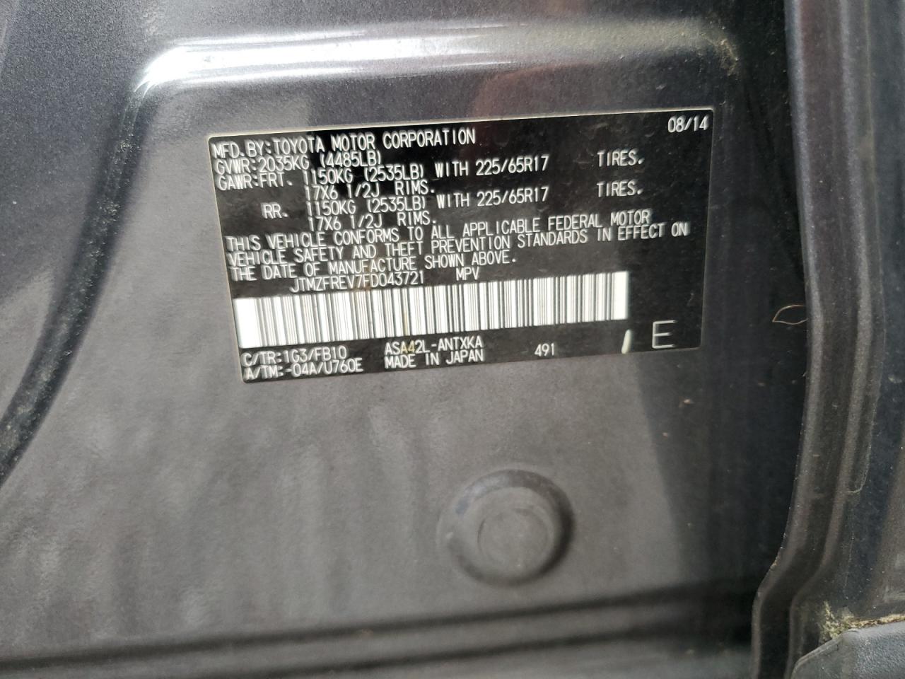 Цвет СерыйЦилиндры 4VIN JTMZFREV7FD043721Состояние Заводится и едет (проверено)Повреждение Задняя