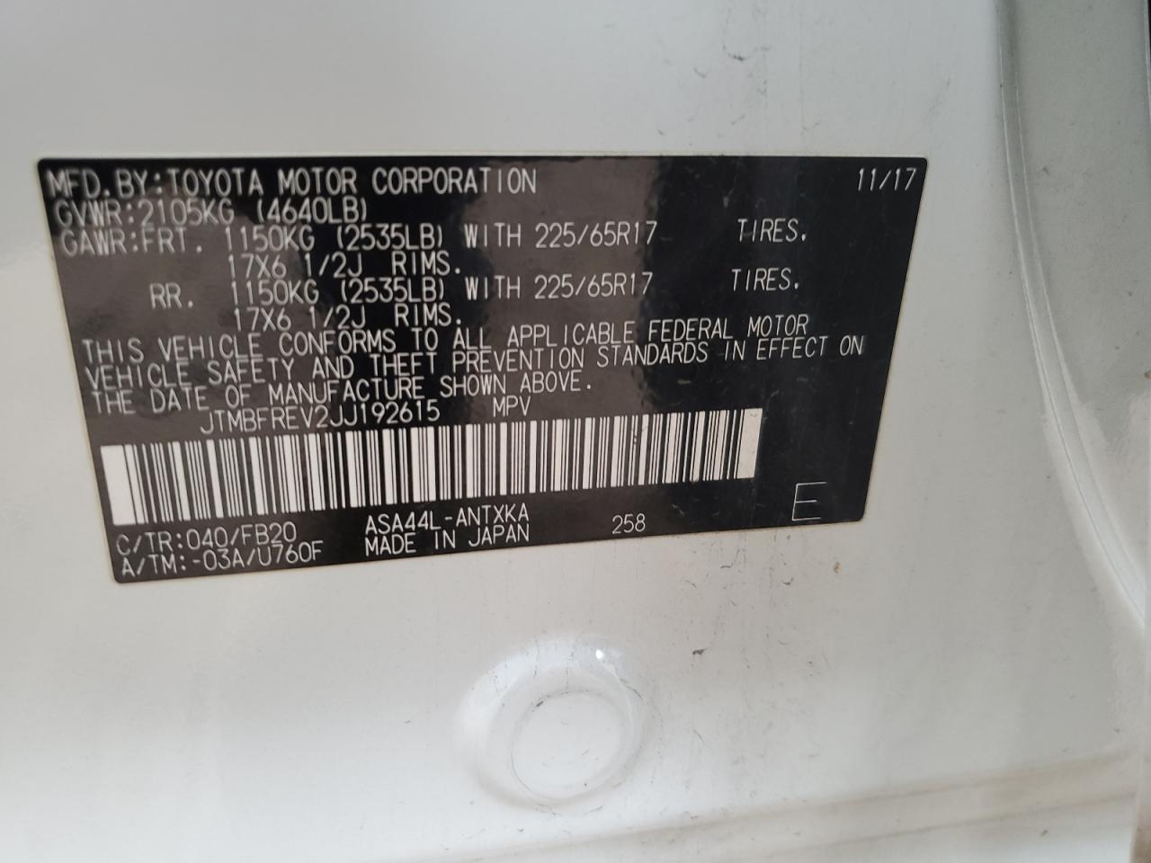 TOYOTA RAV4 2.5 2018 г.в., Полный привод (JTMBFREV2JJ192615) из США