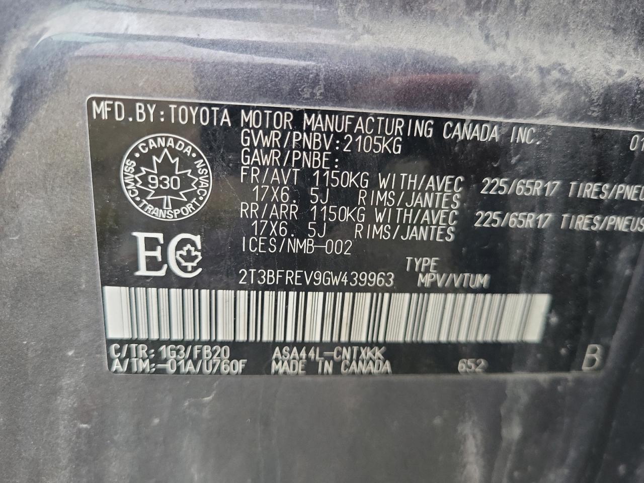 Цвет Древесный угольЦилиндры 4Привод Полный приводVIN 2T3BFREV9GW439963Состояние Заводится и едет (проверено)Повреждение Задняя