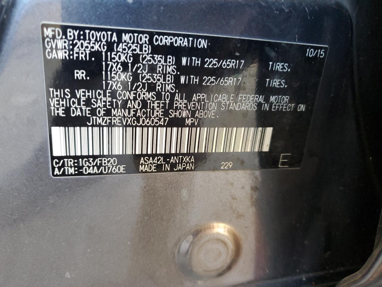 Цвет СерыйЦилиндры 4VIN JTMZFREVXGJ060547Состояние Заводится и едет (проверено)Повреждение Передняя или задняя