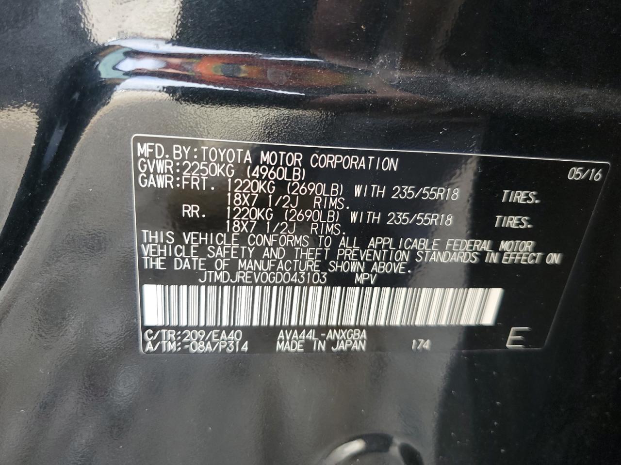 TOYOTA RAV4 2.5 2016 г.в., Полный привод (JTMDJREV0GD043103) из США