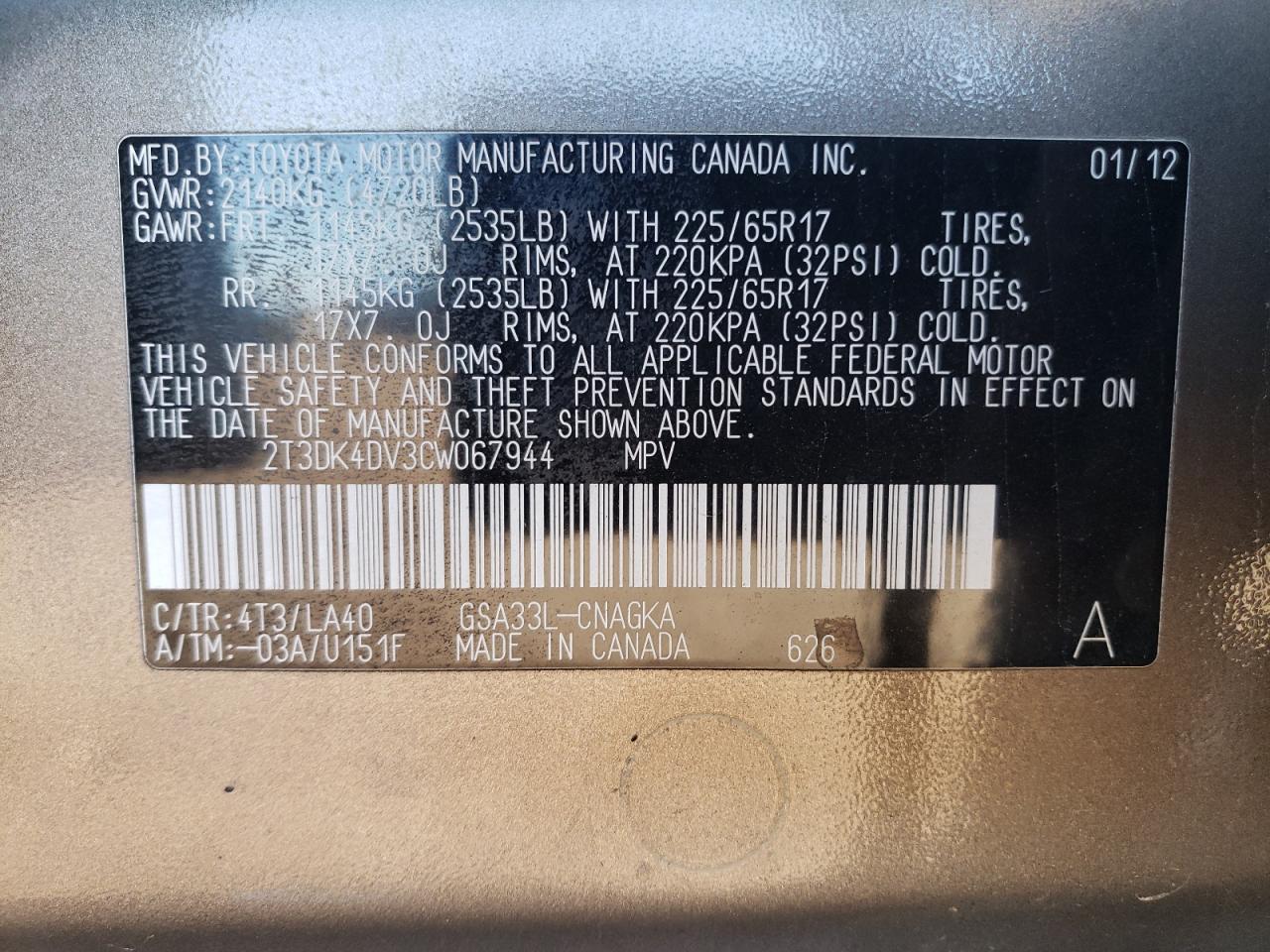 TOYOTA RAV4 3.5 2012 г.в., Полный привод (2T3DK4DV3CW067944) из США